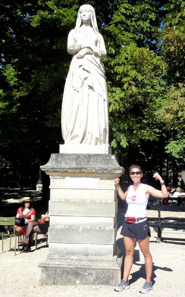 Lors de notre course, au jardin du Luxembourg, nous avons croisé Geneviève, la Patronne de Paris :