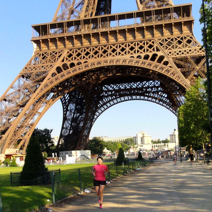 Jess – Pont des Arts et vue sur l’île de la Cité 7h11 – Jess, marathonienne de New-York (USA) en voyage d’affaires à Paris, avait deux objectifs en faisant un « running tour » à Paris : découvrir Paris et faire une sortie longue pour préparer le marathon de New-York. Nous avons donc fait une course de 23 km dans Paris, distance qui permet une belle visite de la ville et la découverte de ses nombreuses facettes.  D’abord, une petite pause pour se rappeler de l’objectif, 42,195 km à New-York : Jess – Avenue de New-York Ensuite, depuis l’avenue de New-York, une petite montée (légère préparation du parcours vallonné du marathon new-yorkais) pour rejoindre l’Esplanade du Trocadéro, la plus belle vue sur la Tour Eiffel : Jess – Esplanade du Trocadéro Nous quittons ensuite la Tour Eiffel par le Champs de Mars : Jess – Champ de Mars Autrefois utilisé pour des manœuvres militaires, le Champs de Mars est maintenant un terrain d’entraînement idéal pour les coureurs : terre battue ferme et souple, boucle de 2 km, jardin toujours ouvert (sans grilles), allées éclairées… Circuit parfait pour les coureurs matinaux ! Beaucoup plus à l’Est de Paris,  c’est sur le terrain sablonneux des Arènes de Lutèce que nous avons couru : Jess – Les Arènes de Lutèce De nos jours, on y rencontre des joueurs de pétanque ou des footballeurs amateurs… Il y a près de 2 000 ans, on y voyait des gladiateurs qui y combattaient, des fauves et aussi des pièces de théâtre. Paris, à l’époque, était romaine et s’appelait Lutèce. Bien sûr, nous n’avons pas manqué de nombreux lieux incontournables de Paris, par exemple, le Pont des Arts (comme on peut le voir avec la première photo de cet article avec sa belle vue sur l’Ile de la Cité) ou la Pyramide du Louvre : Jess – La Pyramide du Louvre Depuis cette balade sportive dans Paris, Jess a couru le marathon de New-York avec une belle performance à la clé.  Paris Running Tour espère y avoir contribué un petit peu… 😉 Merci Jess ! Le circuit du tour :