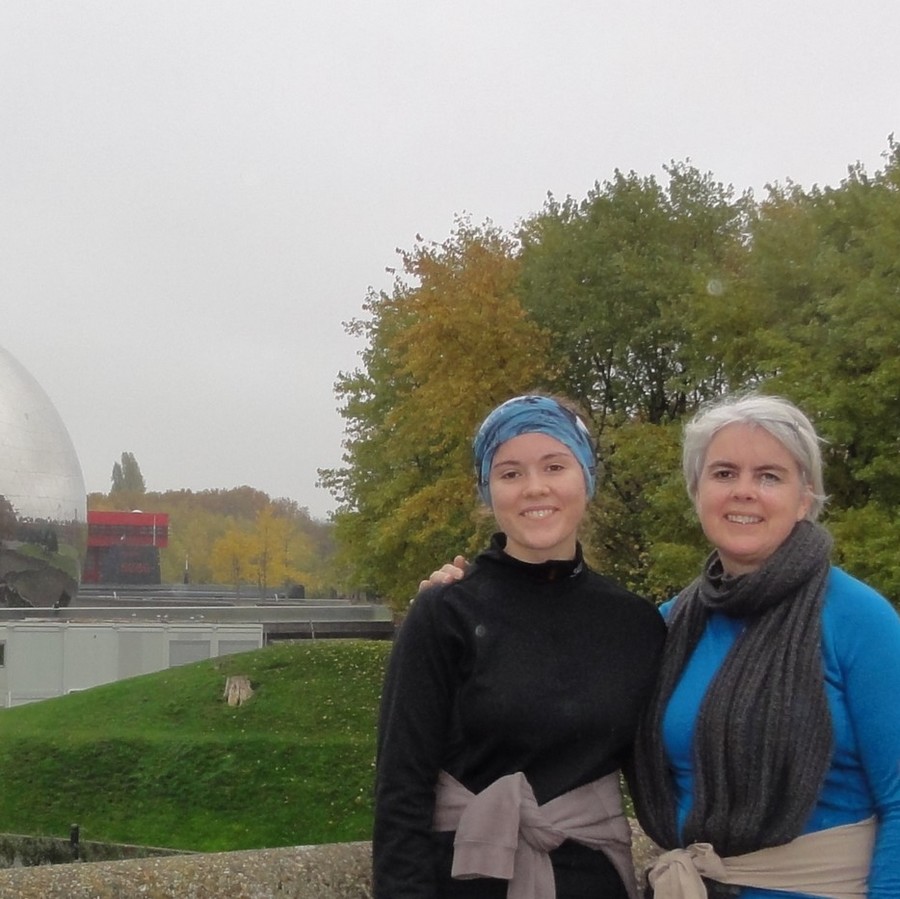Charlotte et Tove – Cité des Sciences et de l’Industrie – La Géode 9h55 – Tove vit en Norvège; le temps d’un court séjour, Tove est venue retrouver sa fille Charlotte qui étudie à Paris. Elles connaissent bien Paris mais ont souhaité découvrir les canaux de l’Est Parisien. Nous avons donc commencé notre visite en courant rue Lafayette, continué le long du Canal de l’Ourcq et du Canal Saint-Martin et terminé notre visite par les Grands Boulevards et les passages Jouffroy et Verdeau. Première rencontre étonnante, l’immeuble du n° 145 rue Lafayette : 145 rue Lafayette Des fenêtres, des balcons, une porte, un toit… Un immeuble comme un autre ? Non, un immeuble factice destiné à cacher une immense bouche d’aération du métro parisien ! Un peu plus loin, toujours rue Lafayette, un panneau mural qui propose une représentation originale de Paris : Coup de chapeau à Paris – François Boisrond – 2001 Après avoir quitté la longue rue Lafayette, nous avons dépassé la limite de l’ancien mur des fermiers généraux et la barrière de la Villette avec sa magnifique rotonde de Claude Nicolas Ledoux, pour trouver le Canal de l’Ourcq. Tove et Charlotte – Canal de l’Ourcq – Vue sud-ouest La construction du Canal de l’Ourcq fut décidée par l’Empereur Napoléon Bonaparte en 1802. Le canal de l’Ourcq assure une alimentation de Paris en eau potable en reliant la rivière Ourcq (plus d’une centaine de kilomètres avec dix écluses).  Les abords du Canal et le quartier de la Villette ont été complètement rénovés à partir des années 1970-1980, notamment par la destruction des gigantesques abattoirs de la Villette en 1974 et par la création de la Cité des Sciences ouvert en 1986, de la Géode (cinéma géant) ouverte en 1985 et du parc de la Villette. Vue du canal à l’intérieur de Paris de la place Stalingrad au Parc de la Villette   Charlotte et Tove – Canal de l’Ourcq – Vue nord-est Après avoir fait demi-tour, nous avons couru le long d’une partie du canal Saint-Martin, autre beau canal, qui lui, rejoint la Seine. Merci Tove et Charlotte ! Le circuit du tour :