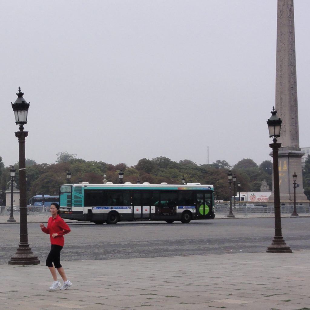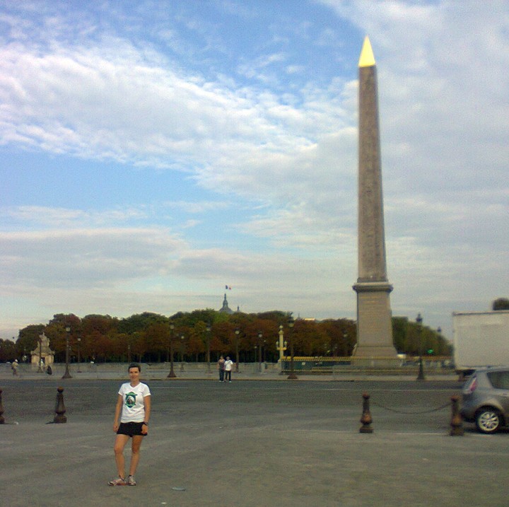 Ewa – Place de la Concorde 8h00 – Ewa habite près de Washington (USA) et est une coureuse régulière. Une allure soutenue nous a permis de parcourir un beau chemin dans Paris en alternant les rives droite et gauche de la Seine. Place de la Concorde, nous avons admiré l’obélisque de Louxor et évoqué son histoire. L’obélisque dans l’Egypte antique représenterait un rayon de soleil figé (d’où, sans doute, à son sommet, le pyramidion et sa couverture d’or). Celui de la place de la Concorde fut offert par le vice-roi d’Egypte, Méhémet Ali, en 1830. Il fut installé sur la place en 1836. A Washington, près de chez Ewa, un autre obélisque est érigé, en l’honneur de George Washington. Construit à partir de 1848 et terminé en 1884, il fut le plus haut monument du monde (169 m) avant d’être dépassé par la tour Eiffel en 1889. Washington monument Connaissez-vous le petit obélisque de l’église Saint-Sulpice à Paris, lui aussi lié au soleil ? Gnomon – Eglise Saint-Sulpice – Paris Merci Ewa ! Le circuit du tour :