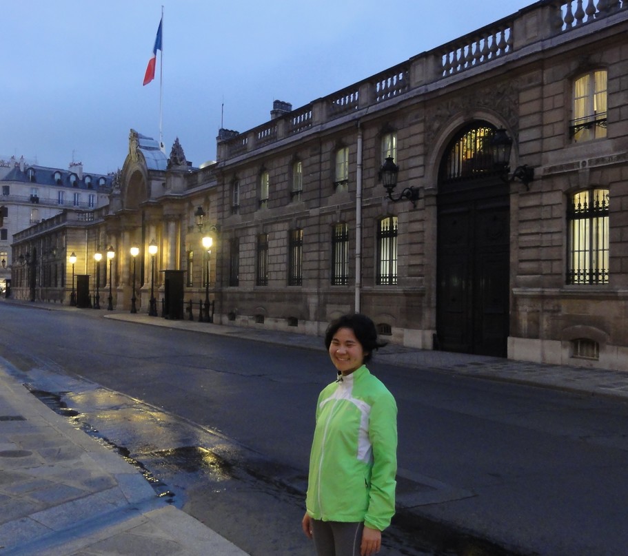Ai – Palais de l’Elysée 7h02 – Ce jeudi matin, tôt, avec Ai, qui vit à Seattle (USA), nous avions décidé de commencer notre tour par une montée sportive vers la butte Montmartre. Ai court généralement sur des parcours vallonnés dans la région de Seattle. A Paris, les terrains de course sont relativement plats, à part quelques rares exceptions comme la butte Montmartre. La suite fut plus facile. La descente nous a d’abord conduits vers le palais de l’Elysée, lieu de résidence du président de la République Française, puis, sur le chemin du retour, nous avons admiré quelques unes des nombreuses sculptures qui agrémentent Paris, dont celle du Général Lafayette et sa petite curiosité, la tortue qui accompagne les pas de son cheval… Le Général Lafayette et la petite tortue (cliquer sur l’image pour l’agrandir) En continuant notre chemin, nous sommes passés par le jardin des Tuileries qui regorge d’œuvres d’art. De nouvelles créations y apparaissent de temps en temps, à l’occasion d’expositions temporaires comme celle de la FIAC qui se tient du 20 au 23 octobre dans différents endroits de Paris. Nous avons eu droit à quelques avant-premières, dont Earthlings de l’artiste Adrian Villar Rojas, « colonne tombée » qui provoque un drôle d’effet lorsqu’on la rencontre pour la première fois. Earthlings – Adrian Villar Rojas (cliquer sur l’image pour l’agrandir) Elle n’a cependant pas l’air de troubler les fils de Caïn, œuvre de Paul Landowski qui se dresse un peu plus loin. Les fils de Cain – Paul Landowski (cliquer sur l’image pour l’agrandir) Merci Ai ! Le circuit du tour :