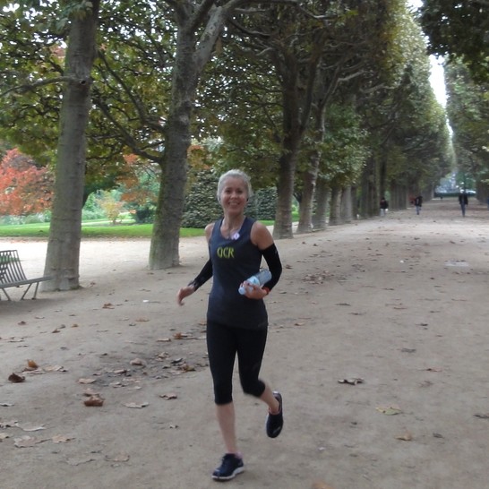 Rosalie – Fontaine Médicis – Jardin du Luxembourg 9h04 – Avec Rosalie, qui vient de la belle ville de Québec, nous avons fait deux visites de Paris en courant. Une importante brume couvrait Paris le premier jour, rendant les bâtiments et les monuments à peine visibles : Rosalie – Le dôme des Invalides se laisse à peine deviner Où sont passées les tours de Notre-Dame, habituellement visibles depuis la rive ? Le Musée d’Orsay se dégage de la brume (à droite de la photo) Et là, quel est ce monument qui se trouve à l’arrière-plan de la photo ? Eh oui ! … La Tour Eiffel que l’on retrouve un peu plus loin, un peu moins voilée : En chemin, nous avons admiré une oeuvre de Dubuffet, installée à l’occasion de la FIAC : Rosalie – Petit Palais – Welcome Parade, de Jean Dubuffet – 2008 et un peu plus à l’ouest, le beau Palais Galliera, le Musée de la mode de la Ville de Paris : Rosalie – Palais Galleria Pour notre second tour, le ciel était un peu plus clair. Nos premières foulées nous ont conduits près du Panthéon, place Sainte Geneviève : Rosalie – Place du Panthéon – Le Panthéon. A gauche, la bibliothèque Sainte-Geneviève et au fond, l’église Saint-Étienne-du-Mont Nous sommes allés saluer le plus vieil arbre de Paris, un Robinier faux-acacia planté par le botaniste Jean Robin en 1601 (arbre originaire d’Amérique du Nord) : Rosalie – Square René Viviani Après le Musée de la Mode, c’est la première boutique du fameux créateur de chaussures, Christian Louboutin que nous sommes allés voir (remarquez que la boutique occupe les locaux d’une ancienne imprimerie) : Rosalie – devant la première boutique de Christian Louboutin, galerie Véro Dodat De retour Rive Gauche, c’est sur les vieux pavés de la Cour du Commerce Saint André que nous avons couru, juste à côté de l’un des plus vieux Cafés d’Europe (1682), le Café Procope, sous les yeux de Benjamin Franklin qui fut l’un des habitués du Café (on dit même qu’il y aurait écrit une partie de la Constitution des Etats-Unis) : Rosalie – Cour du Commerce Saint André Un gentil kiosquier a bien voulu prendre la dernière photo du tour. Amusant d’avoir la vue du vendeur de journaux à l’intérieur de son kiosque ! Rosalie, Paris Running Tour – Avenue du Général Leclerc Merci Rosalie ! Les circuits des tours :