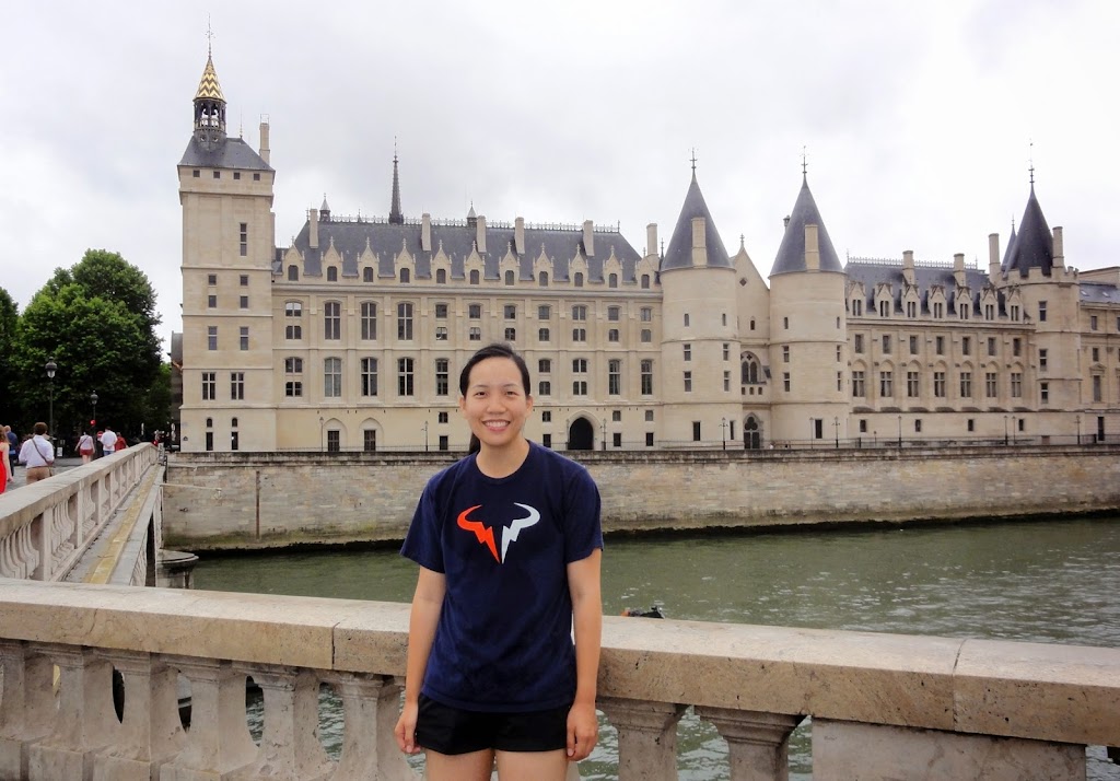 Agnes – Pont au Change – La Conciergerie Jeudi 3 juillet 5h55, samedi 5 juillet 7h33 – Agnes vit à Los Angeles. Parmi les nombreuses visites qu’elle a prévues pour connaître Paris, Agnes a inclus deux Paris Running Tours, deux visites matinales pour bien profiter de la capitale. Un bon moyen effectivement pour comprendre la physionomie de la ville, découvrir de nombreux sites, connaître son histoire et son architecture mais aussi appréhender ses lieux, rues et places de manière sportive. Première matinée : Départ quelques minutes après le lever du soleil. Partis non loin de l’Opéra, allons voir la Tour Eiffel. Place de la Concorde, on commence à voir la tour au loin : Agnes – Place de la Concorde – Derrière l’Obélisque, au loin, la tour Eiffel (remarquez les préparatifs de la Fête Nationale, le 14 juillet, avec les tribunes qui vont accueillir le gouvernement pour le défilé) Approchons-nous. Place de l’Alma, la Tour Eiffel est de plus en plus visible : Agnes – Place de l’Alma avec la réplique de la flamme de la statue de la Liberté et en dessous le fameux tunnel de l’Alma Au fond, la Tour Eiffel Allons maintenant à l’Esplanade du Trocadéro, l’un des meilleurs emplacements pour voir la Tour Eiffel : Agnes – Esplanade du Trocadéro – La tour Eiffel, tout près ! Regardez le paysage visible depuis l’Esplanade, avec au fond, à gauche, Notre Dame, le Panthéon et les Invalides : Repartons vers Notre Dame. Après quelques kilomètres de course, nous pouvons  apercevoir la Cathédrale de plus près depuis le pont du Carrousel : Agnes – Pont du Carrousel – Au loin, sur l’Ile de la Cité, la Sainte-Chapelle et Notre Dame Seconde matinée : Petite pluie ce matin. C’est aujourd’hui que nous allons admirer Notre Dame et le Panthéon. Traversons le Pont des Arts (avec un petit salut à la Tour Eiffel, au loin) : Agnes – Pont des Arts – Au loin, la Tour Eiffel Nous rejoignons le Panthéon et saluons le grand homme nouvellement arrivé : Agnes – Le Panthéon Le Panthéon en restauration, comme on peut le voir avec les échafaudages, accueille l’exposition de l’artiste JR. Nous poursuivons notre route pour enfin trouver la Cathédrale Notre Dame de Paris : Agnes – Notre Dame – Remarquez au sol, les marques qui témoignent de la présence d’une rue (qui existait jusqu’au milieu de 19ème siècle – Sous les pieds d’Agnes, la marque d’une église, Sainte Genevieve des Ardens) Avant de finir notre course, nous croisons une autre église, l’Eglise Saint Eustache (construite de 1532 à 1633) : Agnes – Eglise Saint Eustache Détail amusant, avant la construction de l’église actuelle, se dressait une chapelle (construite au début du XIIIème siècle). Or cette chapelle était consacrée à Sainte Agnès ! Merci Agnes ! Les circuits des tours :