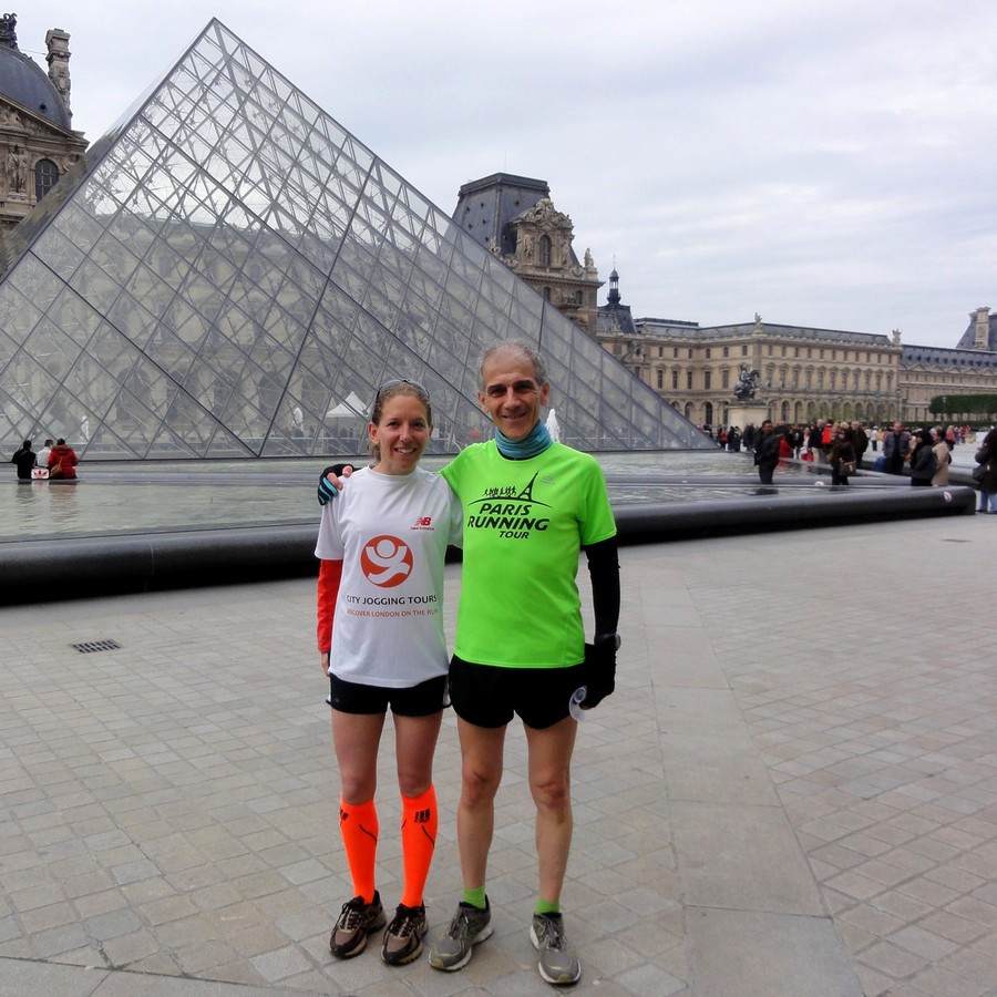 Hope de City Jogging Tour de Londres avec Paris Running Tour – Pyramide du Louvre 10h35 – Hope de Londres (Royaume Uni) est la créatrice de City Jogging Tours of London, l’un des premiers « Sightjogging Tours » au monde. Quoi de mieux qu’une visite de Paris en courant pour partager nos expériences de guides coureurs ? Nous avons donc quitté Montmartre pour faire une jolie balade… Hope – Montmartre, dans le fond tout Paris ! …en descendant au sud et en passant par de jolis passages parisiens… Hope – Passage Jouffroy – Galerie Vivienne …en s’étonnant des fameux cadenas du Pont des Arts, de plus en plus nombreux… Hope – Pont des Arts – Au loin le musée d’Orsay et la Tour Eiffel …en faisant une petite pause au jardin des Tuileries… Hope – Jardin des Tuileries …en traversant les Champs- Elysées… Hope – Champs Elysées – Au loin, l’Arc de Triomphe …pour aller saluer Winston Churchill… Hope – Winston Churchill, près du Petit Palais … et finalement rejoindre la Tour Eiffel et l’Ecole Militaire. City Jogging Tours of London et Paris Running Tour Si vous passez à Londres, allez faire un Jogging Tour avec Hope et son équipe ! Une magnifique balade à Londres ! Un jour, Paris ira avec plaisir courir avec Londres… Merci Hope ! Le circuit du tour :