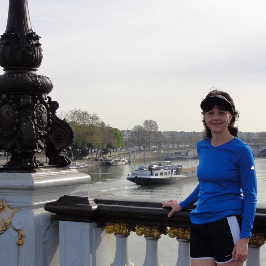 Hope de City Jogging Tour de Londres avec Paris Running Tour – Pyramide du Louvre 10h35 – Hope de Londres (Royaume Uni) est la créatrice de City Jogging Tours of London, l’un des premiers « Sightjogging Tours » au monde. Quoi de mieux qu’une visite de Paris en courant pour partager nos expériences de guides coureurs ? Nous avons donc quitté Montmartre pour faire une jolie balade…  Hope – Montmartre, dans le fond tout Paris ! …en descendant au sud et en passant par de jolis passages parisiens… Hope – Passage Jouffroy – Galerie Vivienne …en s’étonnant des fameux cadenas du Pont des Arts, de plus en plus nombreux… Hope – Pont des Arts – Au loin le musée d’Orsay et la Tour Eiffel …en faisant une petite pause au jardin des Tuileries… Hope – Jardin des Tuileries …en traversant les Champs- Elysées… Hope – Champs Elysées – Au loin, l’Arc de Triomphe …pour aller saluer Winston Churchill… Hope – Winston Churchill, près du Petit Palais … et finalement rejoindre la Tour Eiffel et l’Ecole Militaire. City Jogging Tours of London et Paris Running Tour Si vous passez à Londres, allez faire un Jogging Tour avec Hope et son équipe ! Une magnifique balade à Londres !  Un jour, Paris ira avec plaisir courir avec Londres… Merci Hope ! Le circuit du tour :