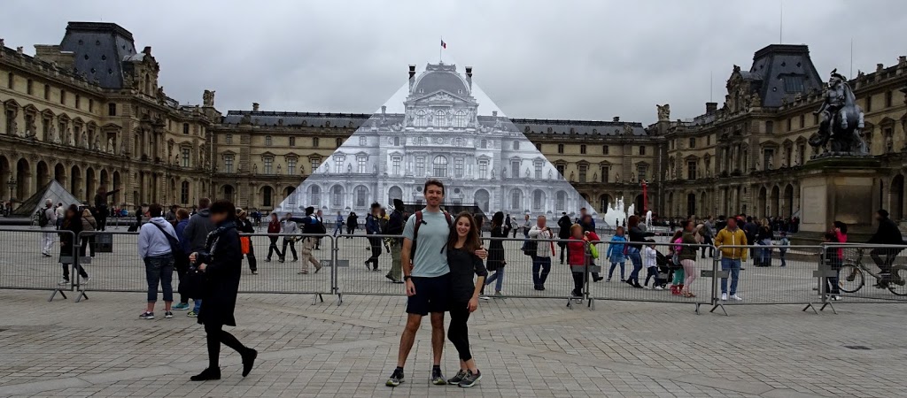 Saul et Molly devant la Pyramide du Louvre 9h00 – Avec Molly et Saul de Californie, nous avons traversé en courant Paris d’ouest en est pour faire un joli tour de plus de 16 km. Nous avons fait un petit arrêt devant le Louvre et surprise, la Pyramide du Louvre semble avoir disparu en laissant un halo grisé ! Est-ce un photo-montage ? Non, du tout, la pyramide a été rendu invisible par l’artiste JR par une étonnante anamorphose. Un regard de côté nous fait comprendre un peu mieux l’effet trompe-l’œil : Nous avons commencé la course près du Palais de la Découverte pour rapidement rejoindre la Seine au niveau du Pont de l’Alma. Un grand nombre de photographes s’étaient attroupés près du Zouave, redevenu une attraction du fait de l’importante crue de la Seine de ce mois de juin 2016 : Pont de l’Alma Retrouvez le zouave et le niveau habituel de la Seine ici. Cette crue est impressionnante et offre des vues surprenantes : Zouave du Pont de l’Alma – Lézard du Pont Alexandre III – Passage vers les berges (passerelle Senghor) Au fait, reprenons la photographie du Pont de l’Alma et de la Tour Eiffel, ne remarquez-vous pas quelque chose de nouveau dans ce paysage parisien ? La nouvelle église orthodoxe russe à Paris : Centre spirituel et culturel orthodoxe russe Depuis le pont de l’Alma, nous grimpons l’avenue du Président Wilson pour rejoindre la colline de Chaillot et les belles vues de la Tour Eiffel depuis le Trocadéro : Molly et Saul – Tour Eiffel depuis le Trocadéro Remarquez la boule au dessus du premier étage de la tour Eiffel, c’est le ballon de l’Euro de Football 2016 (lors du tournoi de tennis de Roland Garros, nous avons droit à une balle de tennis) Plus tard, nous retraversons la Seine par le pont Alexandre III : Molly et Saul – Pont Alexandre III Voyez les berges complètement inondées (habituellement, on peut y courir…) Nous alternons ensuite les beaux parcours rive droite et rive gauche avec le plaisir de courir au Quartier Latin dans la rue Rollin, bordée d’immeubles des XVIème et XVIIème siècles où vécurent notamment les philosophes Pascal et Descartes : Saul et Molly – Rue Rollin Merci Molly, merci Saul ! Le circuit du tour :