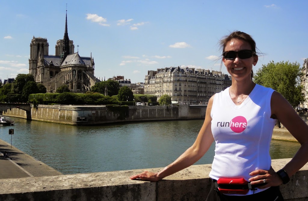 10h04 – Eva et Christian sont des marathoniens aguerris qui vivent près de Copenhague (Danemark). Ce sont aussi des triathlètes qui ont déjà participé à des Iron Man (natation 3,8 km, vélo 180 km, Course à pied 42,195 kilomètres). Ce vendredi matin là, pas d’objectifs de performance, nous avons choisi de visiter Paris tout en courant tranquillement, sur une bonne distance cependant pour pouvoir admirer le plus d’endroits possibles.  Nous avons finalement couru 21 km, la distance d’un semi-marathon. Vous rappelez-vous de Geneviève, la protectrice de Paris, que nous avons évoquée récemment lors de notre visite de Paris avec Jennifer ? Nous avons pu la saluer lors de notre passage sur le pont de Sully. Vous pouvez la voir à gauche de la photo ci-dessus, elle regarde vers l’Est de Paris, l’Est d’où venaient Attila et ses Huns au Vè siècle et qu’elle ne laissa pas entrer dans la Cité. Du pont de Sully, nous sommes allés rejoindre, place du Trocadéro, le Palais de Chaillot,  bâti sur la colline du même nom. C’est l’un des meilleurs points de vue sur la Tour Eiffel.  « Pour mériter la vue », nous avons pris une « petite montée » qui mène en « haut » de la colline… Avec une petite pause cependant pour avoir un souvenir de la grande tour un peu différent :   De retour vers l’Est, en plein Quartier Latin, voici la Sorbonne, la fameuse et très ancienne université (dont l’histoire commence au XIIIè siècle). La chapelle de la Sorbonne que nous voyons sur la photo ci-dessous date du XVIIè siècle. En cours de route, longeant le fleuve, nous nous sommes demandé s’il était possible de nager dans la Seine. Mais oui, bien sûr, à l’occasion du Triathlon de Paris ! Regardez ces vidéos : Un prochain triathlon à Paris, Eva et Christian ? Prochaine édition : Juillet 2013… Merci Eva ! Merci Christian ! Le circuit du tour : Si vous aussi, vous êtes à Paris, nous serons très heureux de courir avec vous. Venez découvrir Paris avec de vrais guides parisiens qui ont toujours plein de secrets à partager avec vous :
