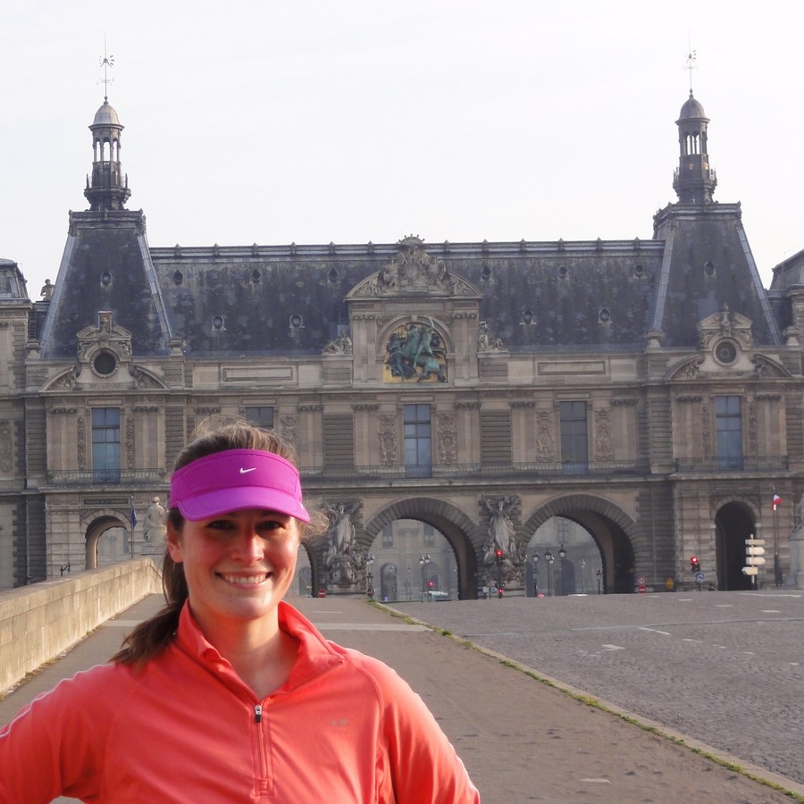 Amy – Pont du Carrousel 7h03 – Amy, de Floride, a choisi de faire un Paris Running Tour matinal en cette belle journée du 9 mars. La lumière était splendide, donnant un bel aspect rose au paysage. A cette heure-là, le dimanche matin, personne dans les rues, très peu de voitures, bref, Paris pour nous tout seuls et quelques autres coureurs matinaux. Regardez ci-dessus, depuis le Pont du Carrousel, le dégradé rose qui accompagne le lever du soleil et éclaire la Seine et les bâtiments du Louvre. Admirez la vue depuis le Pont de la Concorde, à l’Est : Amy – Pont de la Concorde – Au fond, de gauche à droite : Le jardin des Tuileries, la Sainte-Chapelle, Notre-Dame, L’Institut de France et le Musée d’Orsay puis à l’Ouest : Amy – Pont de la Concorde – Au fond, une grande tour en fer ; ), les nouvelles berges et le Pont Alexandre III Dimanche matin, on peut même s’arrêter au milieu de la chaussée devant les Champs-Elysées pour prendre une photo sans craindre les voitures : Amy – Place de la Concorde – Les Champs-Elysées, au fond, l’Arc de Triomphe et tout au loin, la Grande Arche de la Défense De retour vers l’Est, nous faisons une pause à l’entrée des Tuileries, pour faire un petit salut à la Statue de la Renommée qui sonne le triomphe du soleil à Paris ! Amy – Entrée du jardin des Tuileries avec au fond, de gauche à droite, la copie de la Statue de la Renommée, le Grand Palais, l’Obélisque de Louxor au centre de la place de la Concorde Un temps parfait, une belle lumière, idéal pour courir dans Paris ! Merci Amy ! Le circuit du tour :