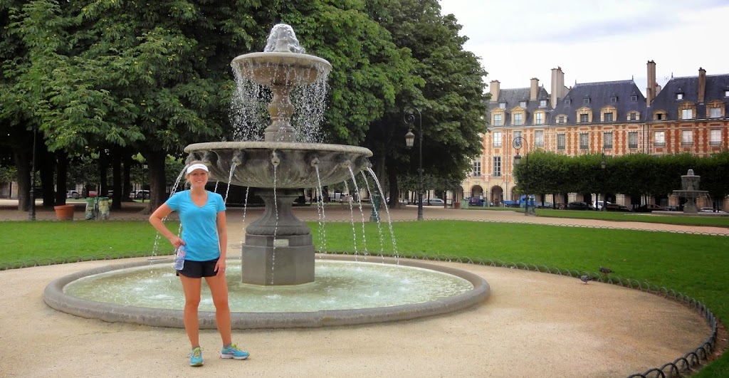 Anne – Place des Vosges 9h09 – Anne de Washington D.C. (USA) est une coureuse régulière (regardez son blog). En ce premier lundi du mois d’août, nous avions décidé de traverser Paris en courant d’est en ouest. Nous sommes partis près de la place de la Nation avec pour objectif d’atteindre le Palais de Chaillot pour profiter de la belle vue sur la Tour Eiffel offerte par l’Esplanade du Trocadéro. Y aller par le chemin le plus court ? Non, non, nous avons choisi de faire plein de zigzags pour pouvoir apprécier Paris dans toute sa splendeur. Au final, plus de 17 kilomètres d’un joli parcours touristique et sportif. Premier arrêt photo : la Place des Vosges. Très calme ce matin-là (photo ci-dessus). Lisez ici la petite histoire amusante à propos de la statue de Louis XIII située au centre du jardin. Saviez-vous que cette place Royale a été renommée Place des Vosges car ce département fut le premier à payer l’impôt sous la Révolution ? De la Place des Vosges, pour rejoindre ensuite la rue Saint-Antoine, nous avons pris le magnifique raccourci offert par l’Hôtel de Sully : Anne – Hôtel de Sully Toujours dans le Marais (rive droite), c’est le Paris de Philippe Auguste dans lequel nous allons pénétrer (poterne Saint-Paul). En effet, le roi Philippe Auguste, à la fin du 12ème siècle, avant de partir pour sa troisième croisade, fit construire une importante muraille protectrice autour de Paris. De nombreuses parties de cette enceinte sont encore visibles de nos jours. Ci-dessous, la plus longue portion du mur conservée. Découvrez ici une autre partie massive du mur, rive gauche, cette fois, ainsi que des plans représentant le Paris de l’époque. Anne – Mur de Phillippe Auguste – 12ème siècle (derrière le mur, le lycée Charlemagne) Traversons la Seine pour visiter l’Ile de la Cité. Regardez (photo ci-dessous) les installations de Paris-Plages, rive droite. Voyez-vous la petite Tour Eiffel rouge ? Nous en avions parlé ici et ici. Anne – Paris-Plages De retour rive droite, surprise ! Une bouche de métro (station Palais-Royal) : Anne – Métro Palais-Royal (Le kiosque des Noctambules – Jean-Michel Othoniel) Comparez cette sortie de métro d’art moderne installée en 2000 avec celles créées cent ans plus tôt, représentatives du courant « Art Nouveau » : voyez ici quelques exemples de ces bouches de métro créées en 1900. D’ailleurs, l’autre sortie de la même station, Palais-Royal, juste devant le Louvre, est aussi typiquement « Art Nouveau ». Zigzag, petit détour rive gauche, quai Anatole France. Juste en face, le jardin des Tuileries que nous allons rapidement rejoindre… Anne – Quai Anatole France …en passant par la passerelle Léopold-Sédar-Senghor, qui nous donne une belle vue sur, de gauche à droite, le Louvre, Notre-Dame et le musée d’Orsay : Anne – Passerelle Léopold-Sédar-Senghor Au jardin des Tuileries, c’est un nouvel exemple d’art moderne que nous rencontrons, un arbre en bronze ! Anne – L’arbre des voyelles (moulage en bronze installé en 1999 – Giusseppe Pepone) Après de nombreuses autres découvertes, nous finissons notre course comme prévu, Esplanade du Trocadéro : Anne – Esplanade du Trocadéro Objectif atteint ! Merci Anne ! Le circuit du tour :