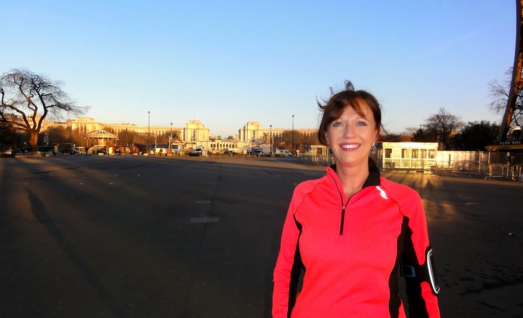 Sous la Tour Eiffel – Au loin le Palais de Chaillot et le jardin du Trocadéro 7h32 – Rachel, du Pays de Galles, est une coureuse régulière avec de beaux résultats… Après le running tour dans Paris, elle est arrivée récemment deuxième féminine d’un semi-marathon. Elle prépare actuellement le prochain Marathon de Londres. En ce début de mois de Mars, le soleil est avec nous pour ce joli tour de Paris en courant. Regardez la photo ci-dessus, nous sommes juste en dessous de la Tour Eiffel. Tôt le matin en mars, l’endroit est bien tranquille. Comparez avec la foule que l’on peut y trouver le lundi de Pâques par exemple ou un weekend d’été… Courir le matin tôt dans Paris est un régal ! Au loin, de l’autre côté de la Seine, on peut reconnaître le grandiose Palais de Chaillot qui fut construit pour l’exposition universelle de 1937, dernière exposition universelle à Paris. Le Palais de Chaillot remplaça le Palais du Trocadéro construit au même endroit, cette fois-là pour l’exposition universelle de 1878 : Vue aérienne du Palais du Trocadéro – 1934 Au fait, savez-vous ce que signifie Trocadéro ? Il s’agit d’un fort qui est situé à Cadix en Espagne et le lieu d’une victoire des Français venus aider l’Espagne à rétablir la monarchie absolue en 1823 (le Roi Louis XVIII règne alors en France). Le Palais du Trocadéro construit en 1878 doit son nom à une victoire royaliste ! Nous sommes partir courir tôt, accompagnés par le soleil levant qui a éclairé pour nous les magnifiques monuments de Paris : L’Arc de Triomphe. Nous sommes dans son ombre, le soleil commençant à éclairer les Champs-Elysées Le Palais Galliera – Le Musée de la mode avec jusqu’au 23 août 2015 l’exposition consacrée à Jeanne Lanvin La Tour Eiffel – Nous sommes au Palais de Chaillot ! Le Pont Alexandre III avec dans le fond la statue symbolisant la France Renaissante ainsi qu’en haut du pylône, l’une des quatre Renommées : La Renommée de la Guerre. Ces quatre statues ont été recouvertes de feuilles d’or en 1989. Le Pont des Arts et dans le fond, la Galerie du bord de l’eau du Louvre – Le Pont des Arts, connu ces dernières années pour tous les cadenas qu’y posent les touristes amoureux, est en ce moment protégé par des panneaux de bois. Ces panneaux recouverts de graffitis gâchent un peu la beauté du lieu. Cela devrait être temporaire. Le Palais Royal et ses fameuses Colonnes de Buren (« Les deux plateaux »). Le Théâtre Éphémère a maintenant disparu. Ce théâtre en bois avait accueilli temporairement la troupe de la Comédie Française pendant les travaux du Palais Royal. On peut à nouveau voir le jardin du Palais Royal au travers des colonnes. Le Jardin des Tuileries – Nos ombres sont encore bien longues ! Merci Rachel ! Nous vous souhaitons un très beau marathon de Londres ! Le circuit du tour :