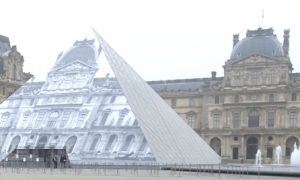 Est-ce un photo-montage ? Non, du tout, la pyramide a été rendu invisible par l’artiste JR par une étonnante anamorphose.