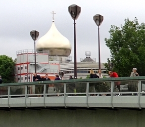 Au fait, reprenons la photographie du Pont de l’Alma et de la Tour Eiffel, ne remarquez-vous pas quelque chose de nouveau dans ce paysage parisien ? La nouvelle église orthodoxe russe à Paris :